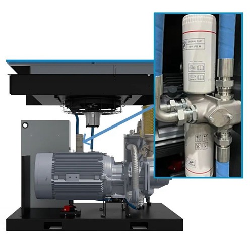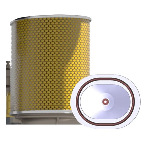 新机型的空滤采用加强型冲孔钢板作为外层保护,不仅强度高,而且空气能从360°进入进气阀,减少了压力损失。椭圆型的设计提升了防伪等级。这些改进进一步提高了空压机的性能及运行稳定性。