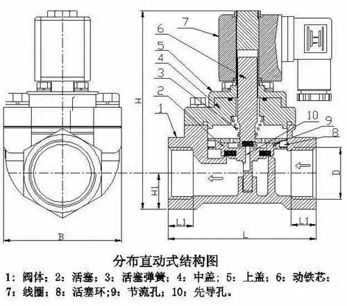 原理:通电时,电磁力把先导孔打开,上腔室压力迅速下降,在敞开件周围形成上低下高的压差,流体压力推动敞开件向上移动,阀门打开;断电时,弹簧力把先导孔敞开,入口压力通过旁通孔迅速腔室在关阀件周围形成下低上高的压差,流体压力推动敞开件向下移动,敞开阀门。