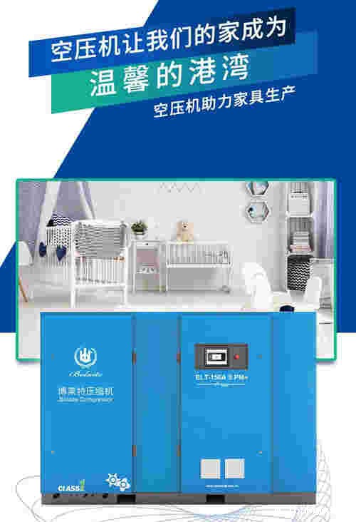 空压机可满足家具生产环境温度高、粉尘多等特点,为其提供稳定、节能、安全的压缩空气。