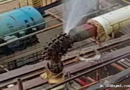 1月15日13时左右,盘锦浩业化工有限公司和维保单位再次开始组织实施带压密封作业。现场采用两台吊车分别各吊一个吊篮,每个吊篮里安排两名堵漏作业人员,分别由吊车吊至泄漏点旁。吊车用对讲机指挥(对讲机为非防爆型)。