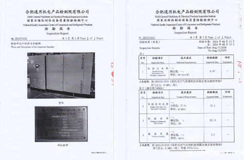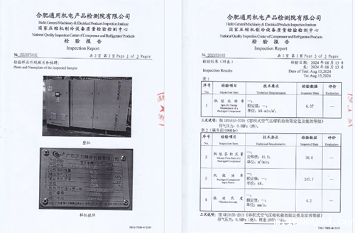 1、两级喷水单螺杆空气压缩机最核心的亮点是:相对单级压缩机具有更高效、更节能、更环保,40立方系列两级喷水单螺杆空气压缩机,邀请行业公认权威测试机构测试其中的200、220、250kW水冷永磁变频机组,报告如下图所示,机组输入比功率达分别为6.07、6.07、5.97kW/(m³/min),其中200与250kW的机组输入比功率数值相当达到《容积式空气压缩机能效限定值及能效等级》(GB 19153-2019)变转速喷油回转压缩机的同档功率的一级能效值,是无油容积式压缩机的节能明星产品。
