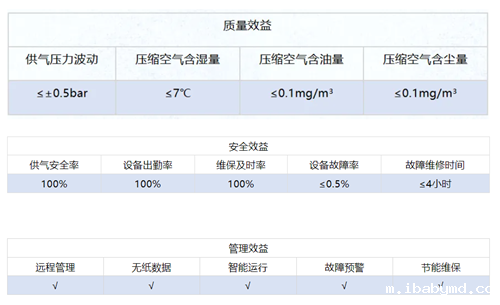 从压缩空气用电单耗、用气品质、智能化运行等全方面的综合解决方案方式整体交付于用户。经过全新改造后的空压站整站输功效率达到60.36%,超过一级能效58%的标准,压缩空气单位能耗降至0.1025kW.h/m³,节能率达到30.6%,节能效益明显。