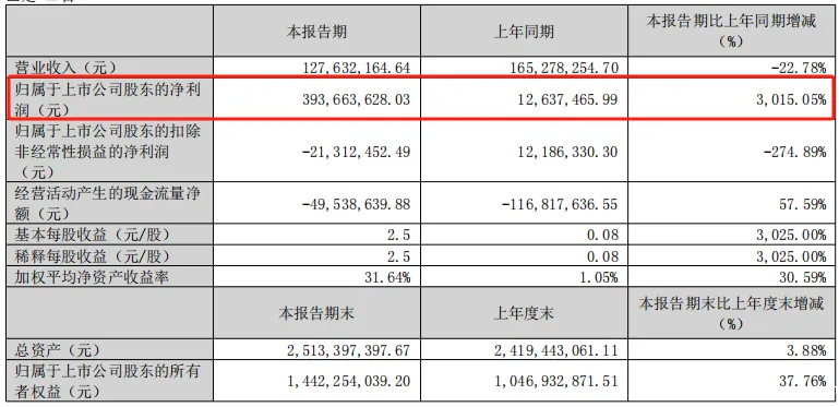 5、2025年第一季度基本每股收益较去年同期上升3025.00%,主要系净利润大幅度增长。