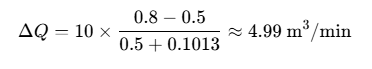 案例:原10m³/min空压机(8bar)现仅达5bar,需增容: