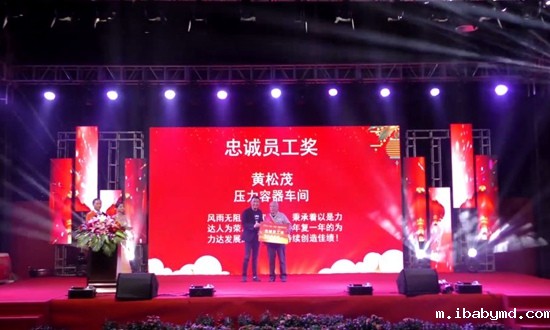 力达集团2019年度各项事业稳步前进,归功于奋斗在各自岗位的力达人。表彰环节共设九个奖项,包括29名个人奖、一个团体奖。分别是年度工作积极分子、优秀员工奖、技能能手、研发创新奖、最佳新锐奖、销售之星、优秀管理奖、优秀经理奖、忠诚员工奖、年度团队风尚奖。陈乙平总经理做意义深远的总结致辞后,李大伟副总宣布表彰,获奖人员依次上台领奖,由公司高管为获奖人员颁奖。其中,压力容器车间黄松茂在力达集团工作十五年直至本年度退休,风雨无阻,坚守岗位,获得忠诚员工奖并发表获奖感言,他表示力达集团是一家优秀的企业,祝愿力达集团事业继创辉煌。