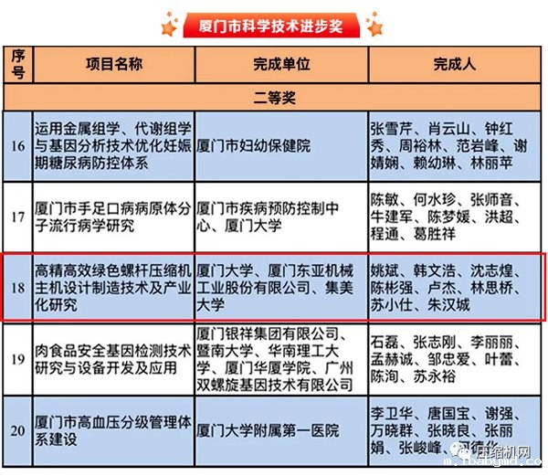 根据《厦门市科学技术奖励办法》和市科学技术奖励委员会评审结果,厦门东亚机械捷豹研发团队的“高精高效绿色螺杆压缩机主机设计制造技术及产业化研究”项目突出重围。