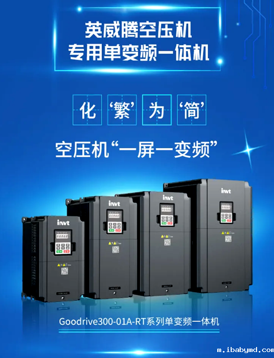 近日,英威腾重磅推出一款针对空压机行业全新开发的一款单变频一体机——GD300-01A-RT系列变频器。