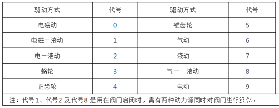 表3 阀门驱动方式代号