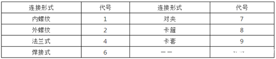 表4 阀门连接端连接形式代号