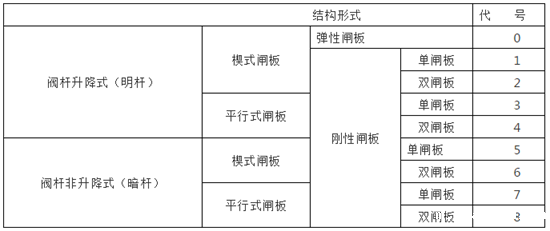 表5 闸阀结构形式代号