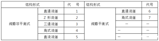 表6 截止阀、节流阀和柱塞阀结构形式代号
