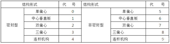 表8 蝶阀结构形式代号