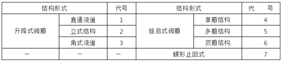 4.阀门结构形式代号阀门结构形式用阿拉伯数字表示,按表5~15 规定。