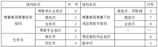 表12 安全阀结构形式代号
