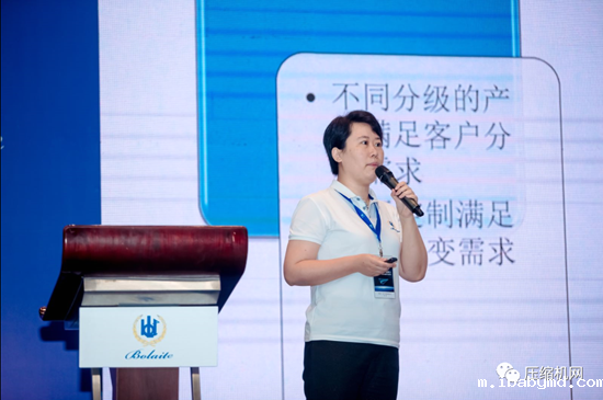 随后,博莱特新任销售总监杨敏女士进行了“博莱特品牌的竞争力”的演讲,指出传统空压机制造业和渠道销售面临的三大压力,并指出了在工业4.0时代制造企业和销售理念的转型升级的方向,这给广大代理商提供了新的销售思路。