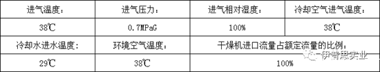 确定冷干机的输入性能参数时,可以参照国家标准JB/T 10526-2017一般用冷冻式压缩空气干燥器 表1 规定工况A2 满负荷。