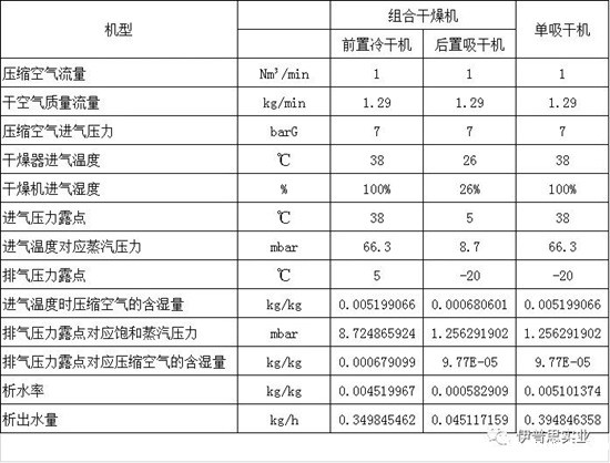 表3 :组合干燥机和单吸干机综合能耗对比表