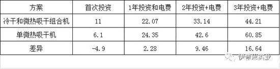 表5 :冷干和微热组合机和单微热吸干机对比 –单位万元