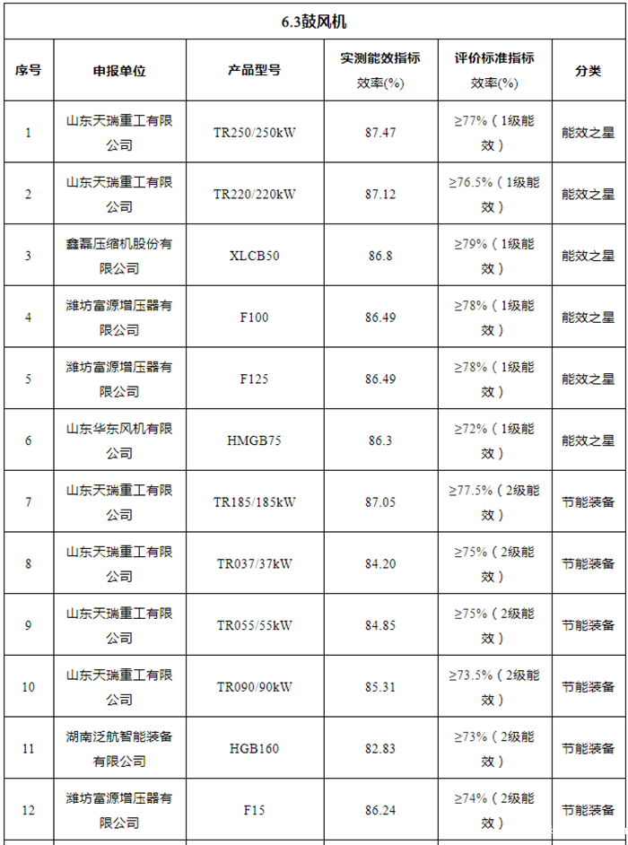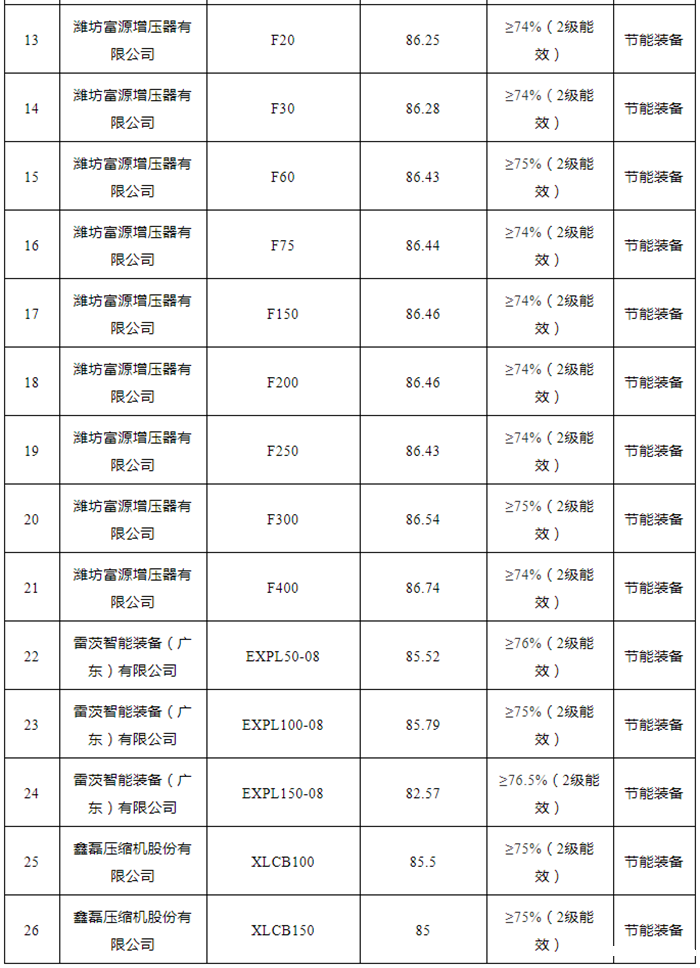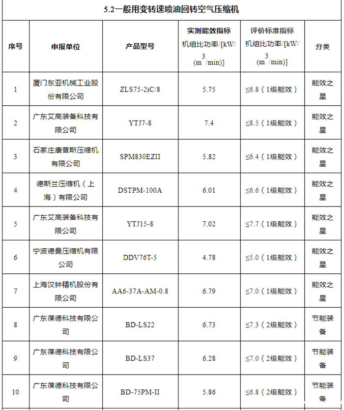 2021年“能效之星”公示!41款空压机、26款鼓风机产品入选