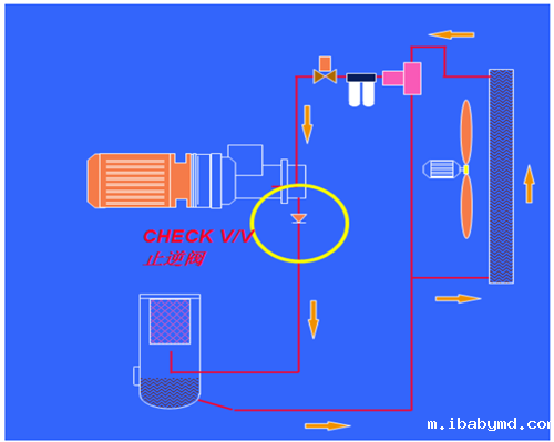 2、当机组停机时切断整个油路以免冷却剂从压缩机吸气口冒出.