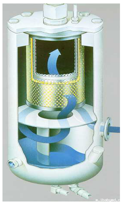 作用:1. 储存冷却剂。2. 初级分离。组成:1. 分离筒2. 油分离芯(2年更换1次)3. 回油管4. 最小压力阀