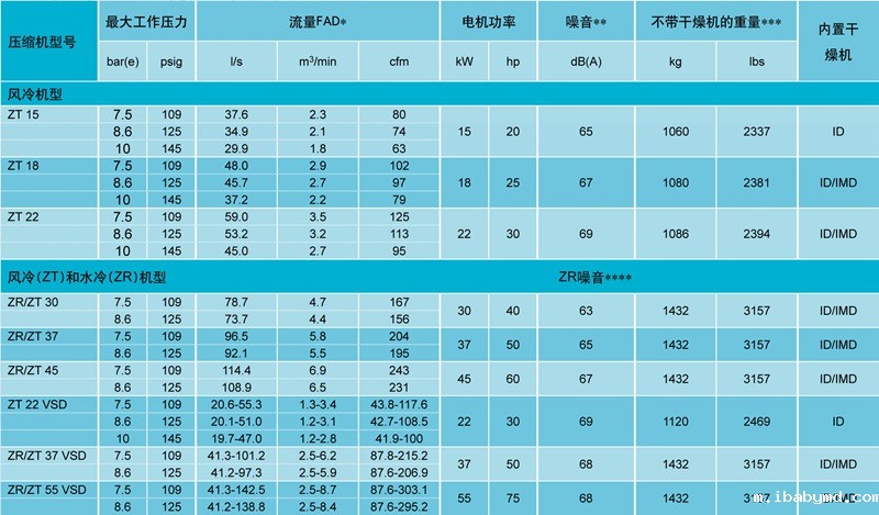 阿特拉斯ZT15-22, ZR/ZT 30-45, ZR/ZT 22-37-55 VSD,无油压缩空气质量高、经济