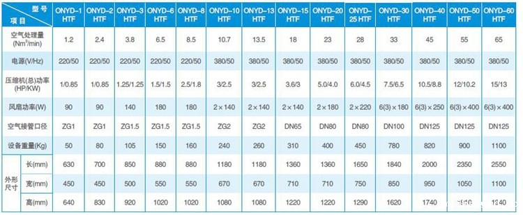冷冻式干燥器分为风冷标准型(低、高温型)、水冷标准型(低、高温型)、特殊型(高温,高压、低压、深冷、防爆等)处理量从1.7m3/ min到500m3/min:压力露点2-10℃:控制方式有仪表、电子、 PLC 等多种。电源220V/1ph/50H•、380V/3ph/50Hz、110V/1ph/60H•、440V/3ph/50Hz,空气系统有不锈钢外筒体、铝外筒体,还可以生产深冷干机、冷水机、冷却器等,可为您定制各种特殊要求的产品。