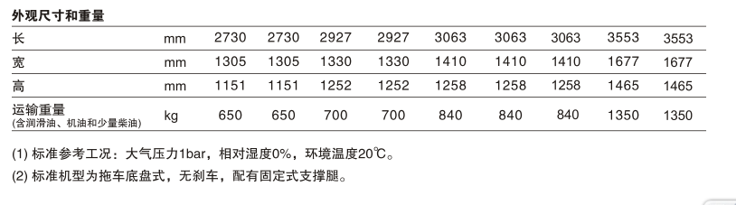 10 种型号。所有型号的重量均小于750Kg,包括选件以及内置发生器和后冷器